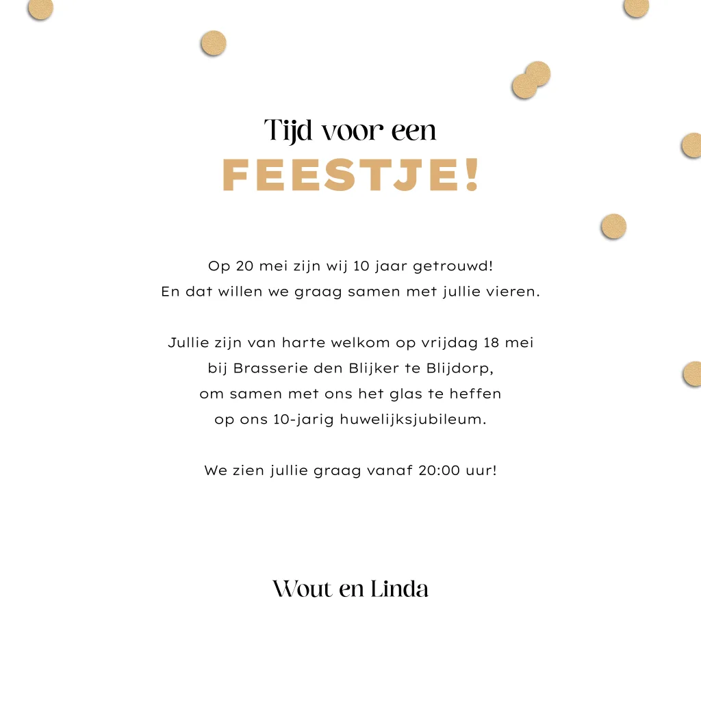 Huwelijksjubileum 10 jaar getrouwd uitnodiging met goudlook confetti