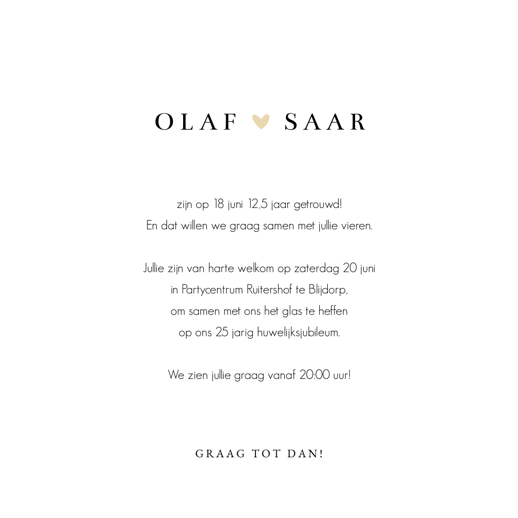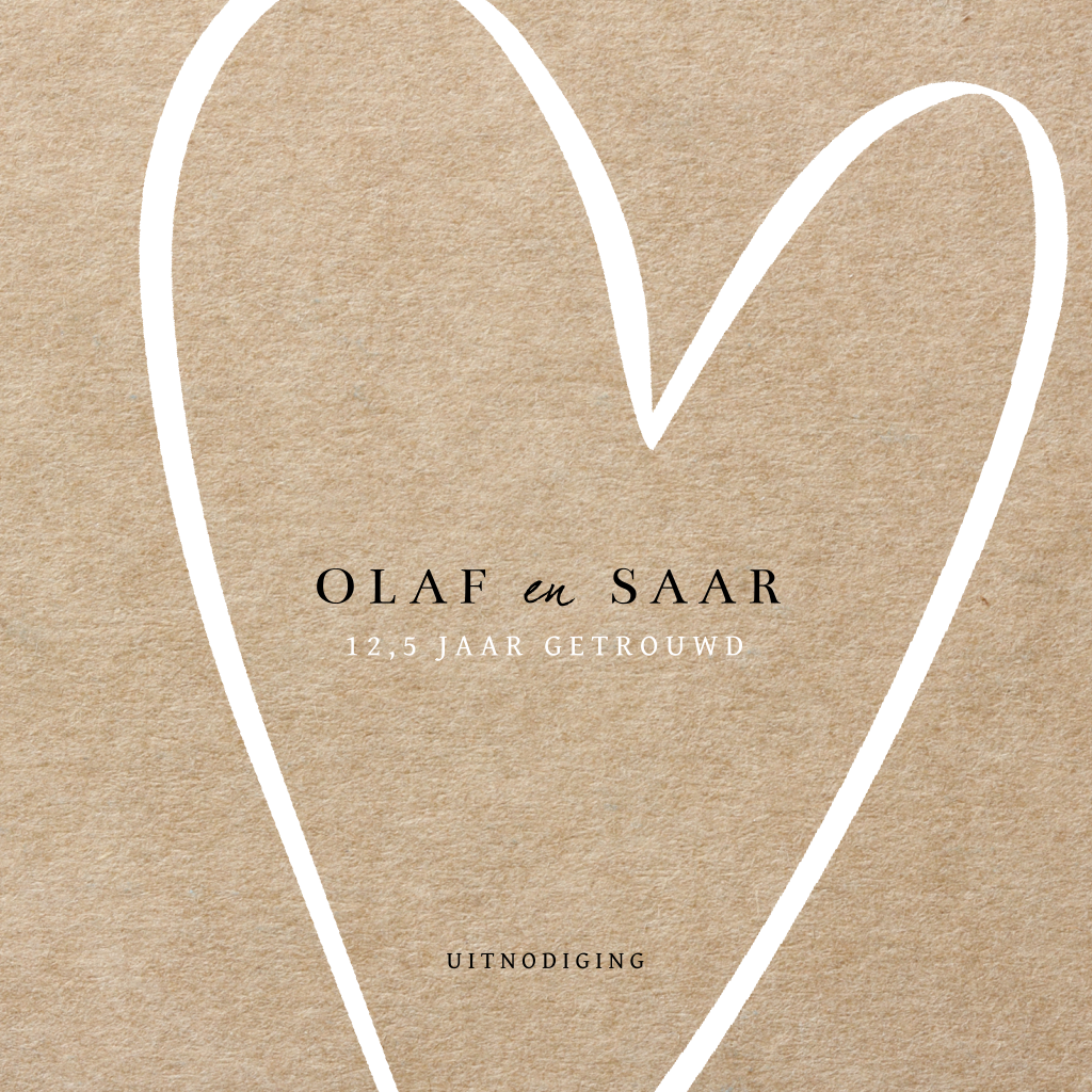 Jubileum uitnodiging voor 12,5 jaar getrouwd. Het grote witte hart geeft de kaart een frisse uitstraling. Deze kaart is tijdloos en het aantal huwelijksjaren is gemakkelijk aan te passen. Het gekraste hart op de kartonnen achtergrond is een echte hippe combinatie.