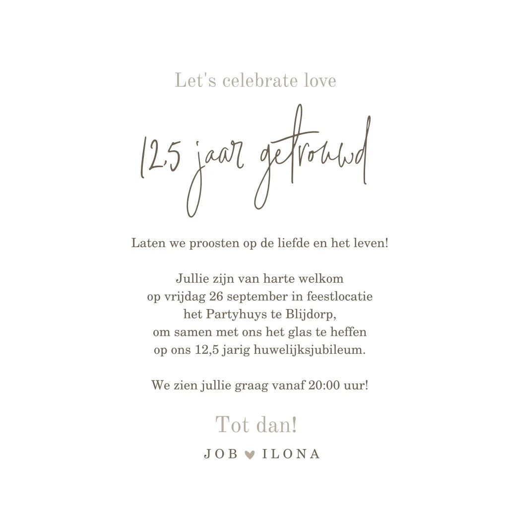 Uitnodiging 12,5 jaar getrouwd