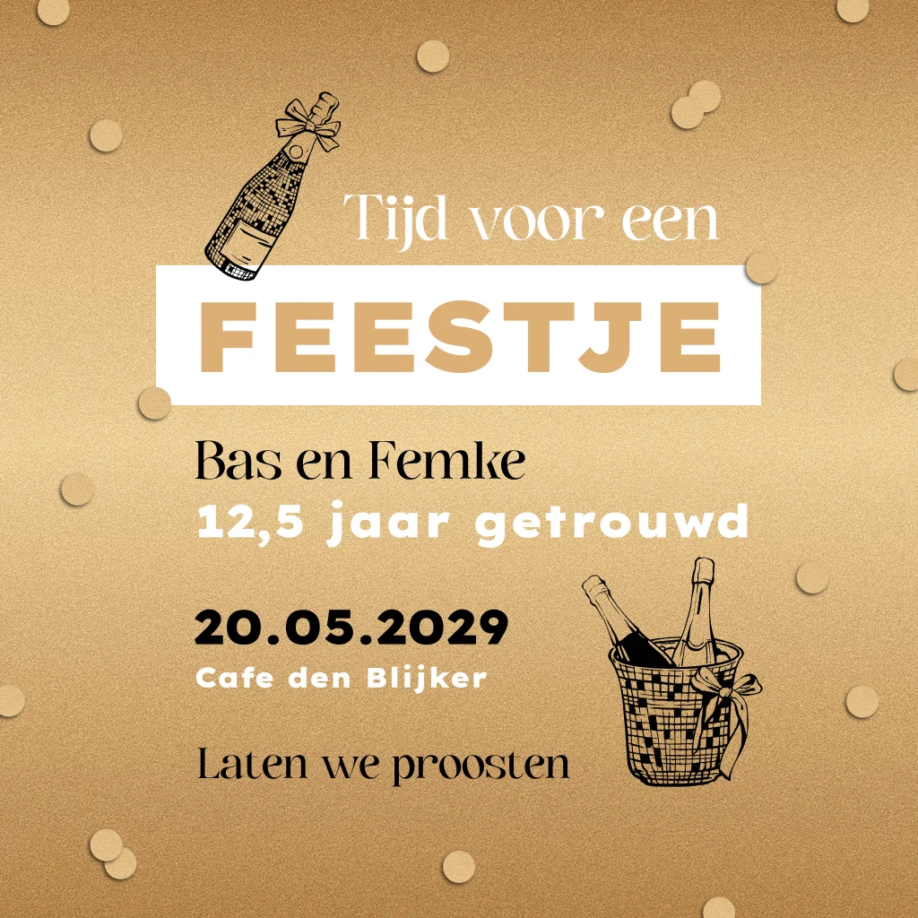 12,5 jaar getrouwd uitnodiging in goudlook met champagne en confetti
