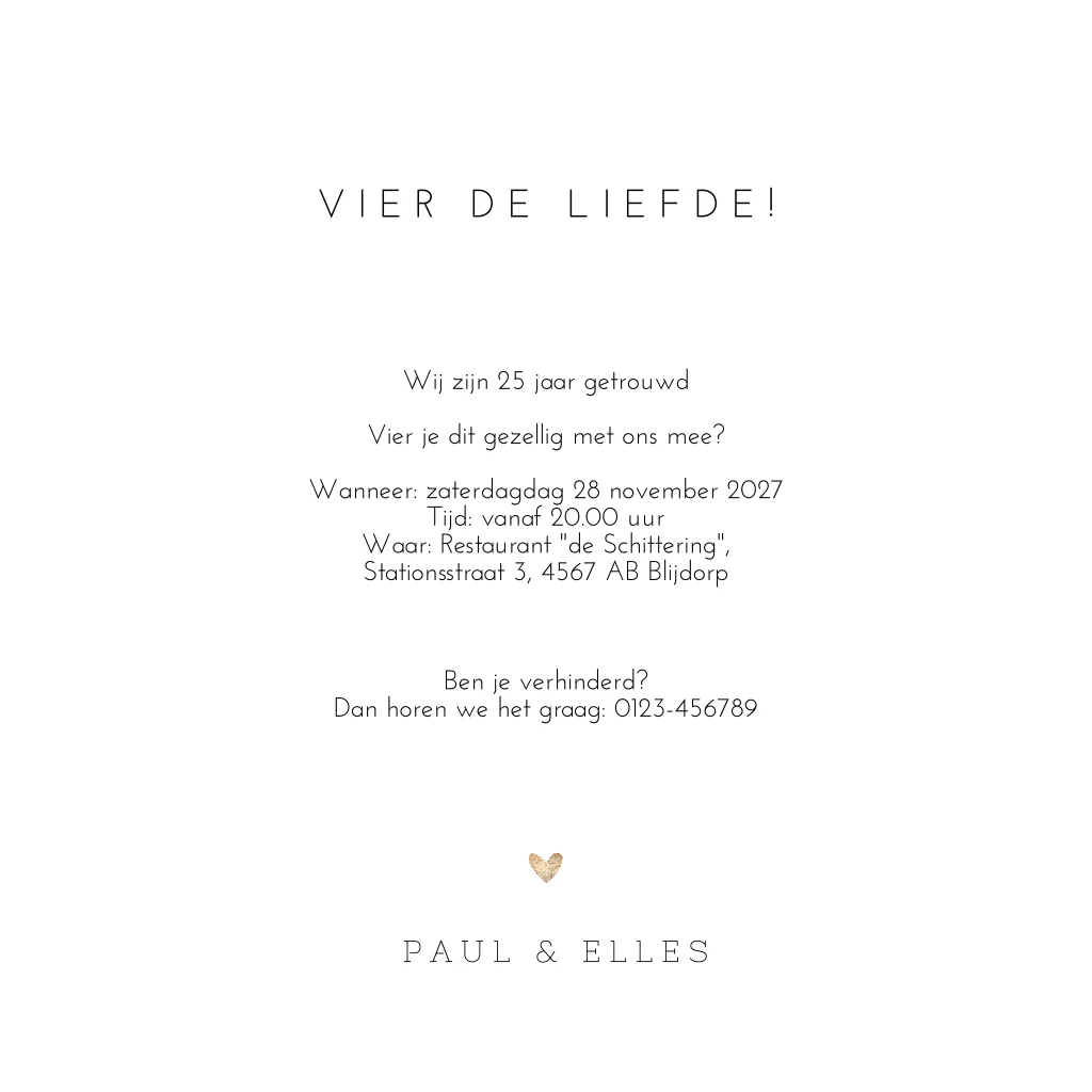 Rustige 25 jaar getrouwd uitnodiging met foto en hartje