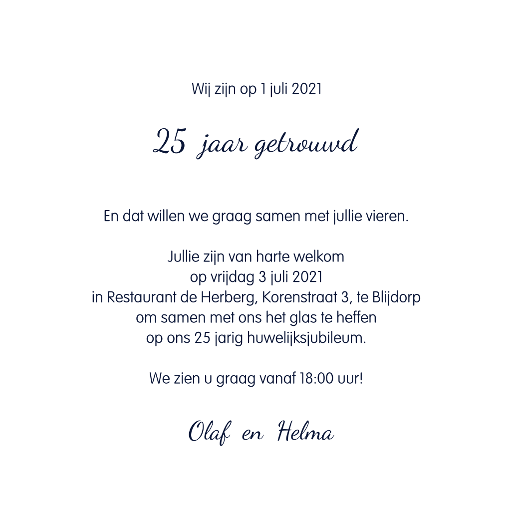 Uitnodiging 25 jaar getrouwd