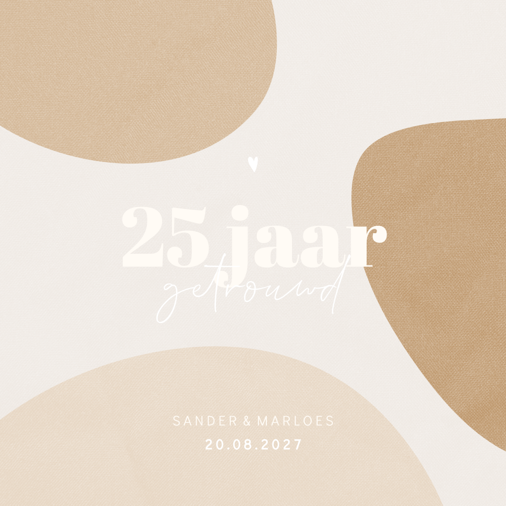 Wat een mooie dag om te vieren, 25 jaar getrouwd! Dit 25-jarig huwelijksjubileum is echt een bijzondere mijlpaal waar je met trots op kunt terugkijken. Je wilt natuurlijk dat alles perfect is, en dat begint bij de uitnodigingen. Foliedruk is een unieke en stijlvolle manier om je uitnodigingen mee te maken. En met de organische vormen, ronde hoeken en de linnenlook zorg je voor een elegant en modern ontwerp.