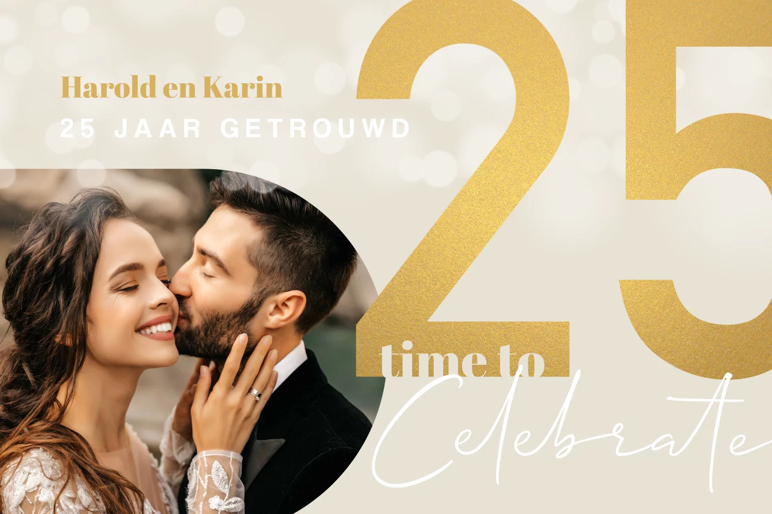 Feestelijke stijlvolle uitnodiging 25 jaar getrouwd goudlook en foto