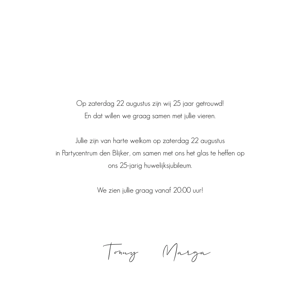 Deze uitnodigingskaart kun je ook gebruiken wanneer je wilt vieren dat je bijvoorbeeld 25 jaar samen bent of een werk gerelateerd jubileum feest wilt geven.