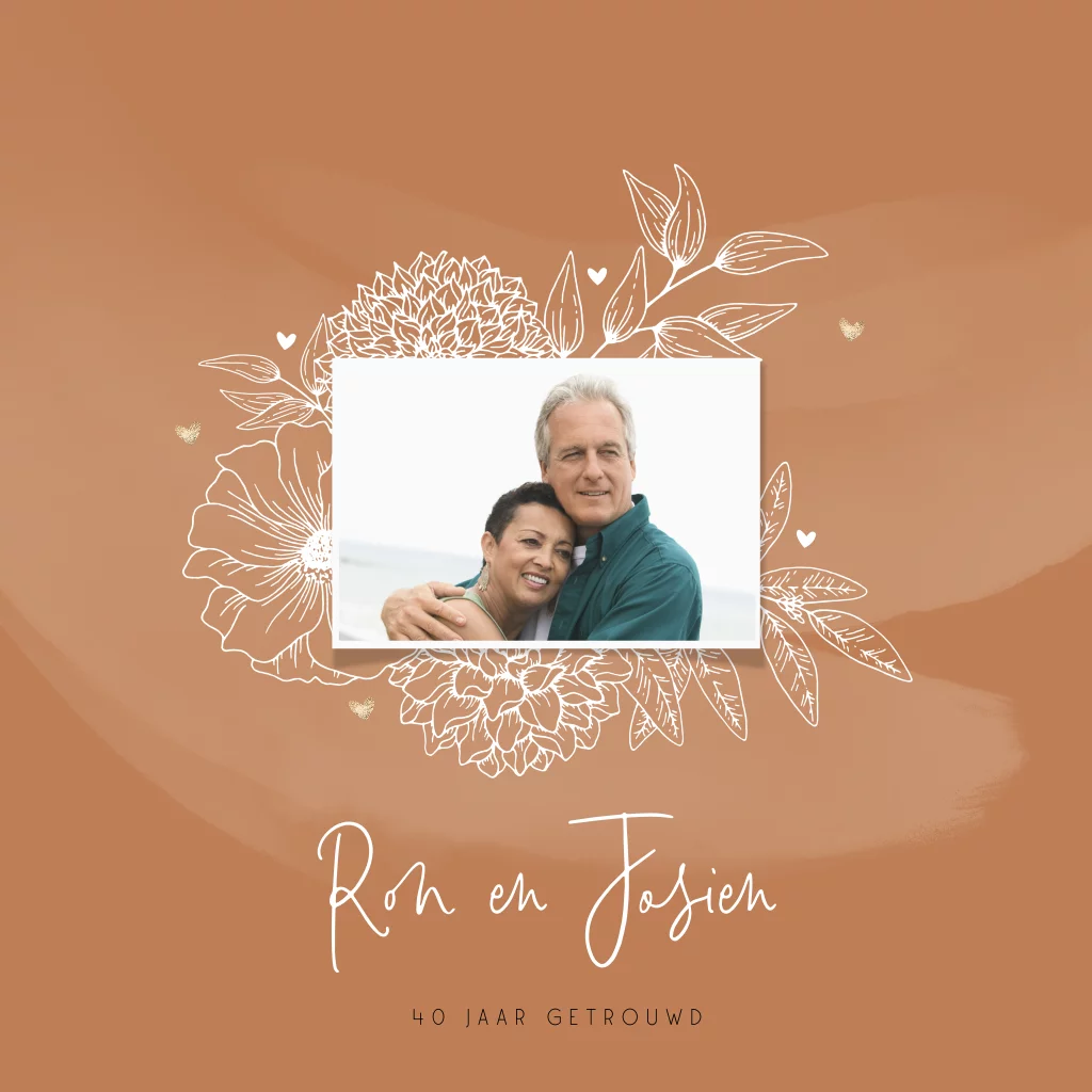 40 jaar getrouwd uitnodiging met foto en bloemen