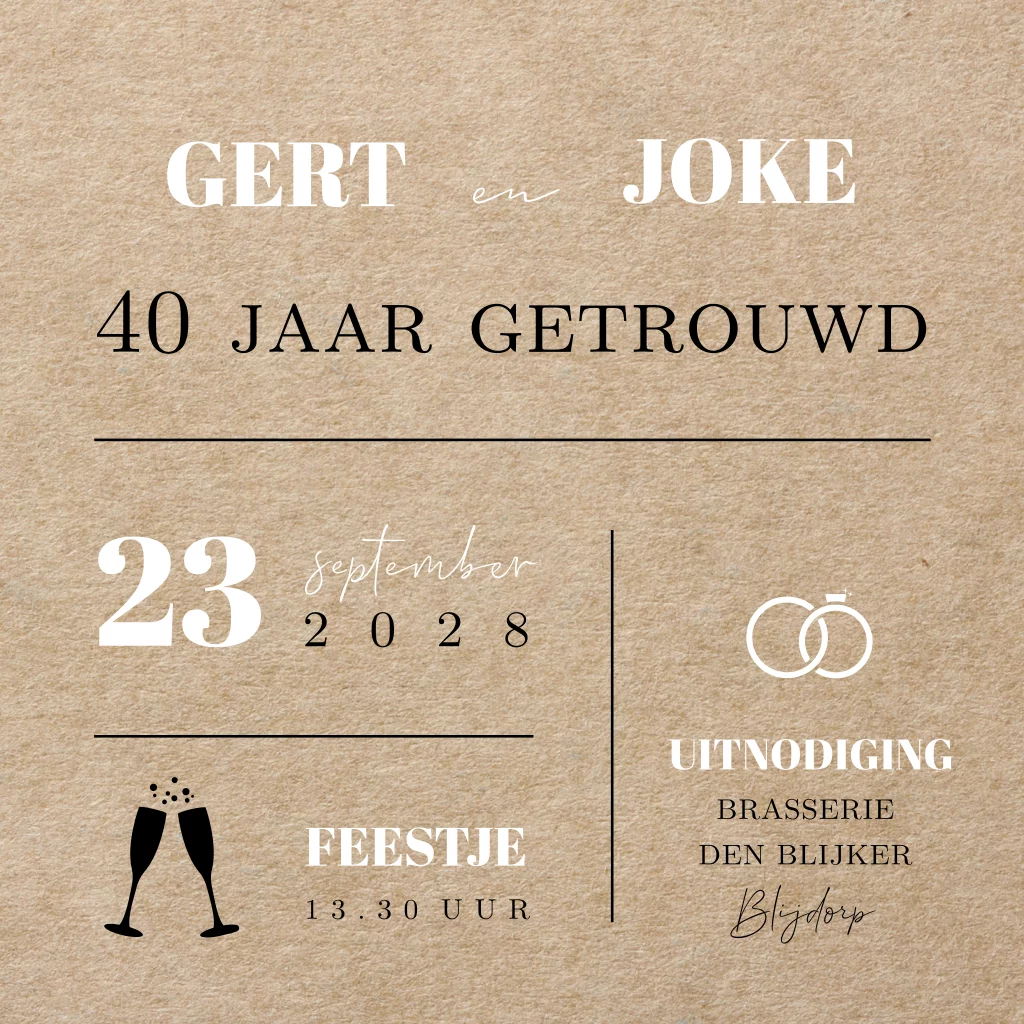 Symbolen uitnodiging 40 jaar getrouwd in kartonlook