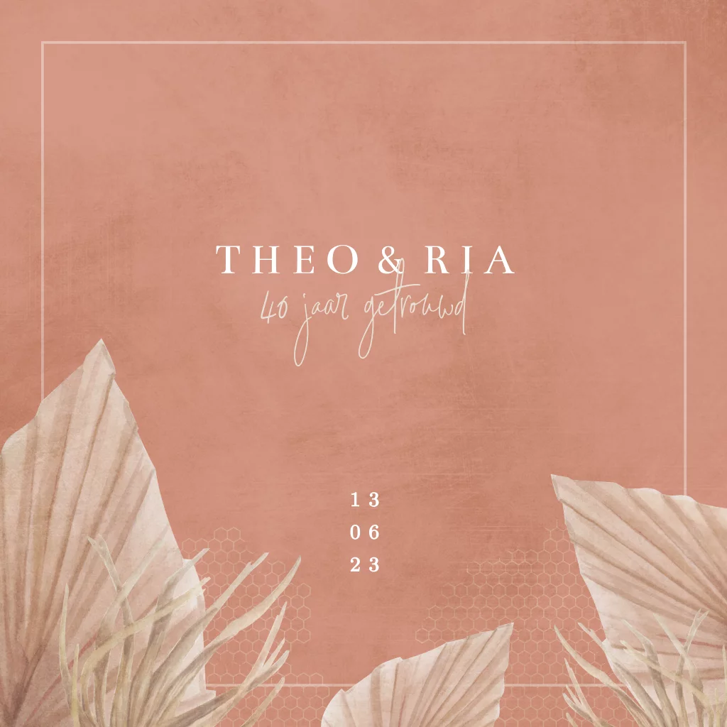 Mooie en sierlijk 40 jaar getrouwd uitnodiging. Deze jubileumkaart is tijdloos en chique. In de editor kunt u de kaart naar wens aanpassen.