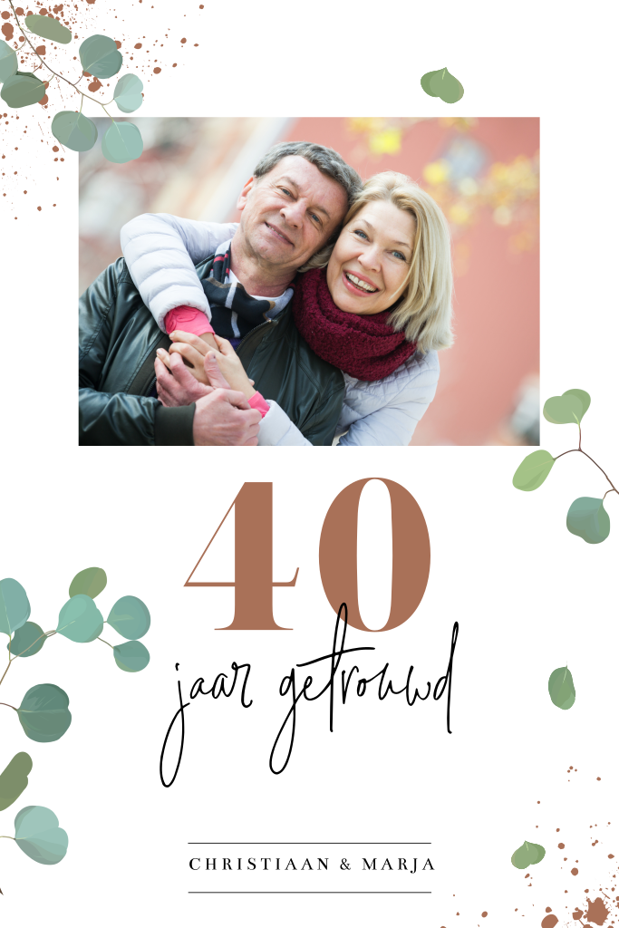 Uitnodiging 40 jaar getrouwd met foto en eucalyptus