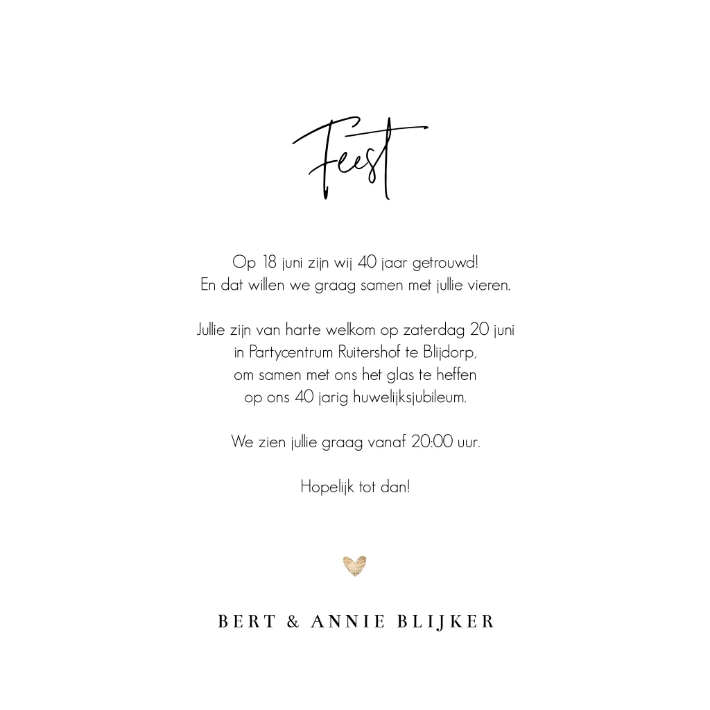 Uitnodiging 40 jaar getrouwd met gouden hart