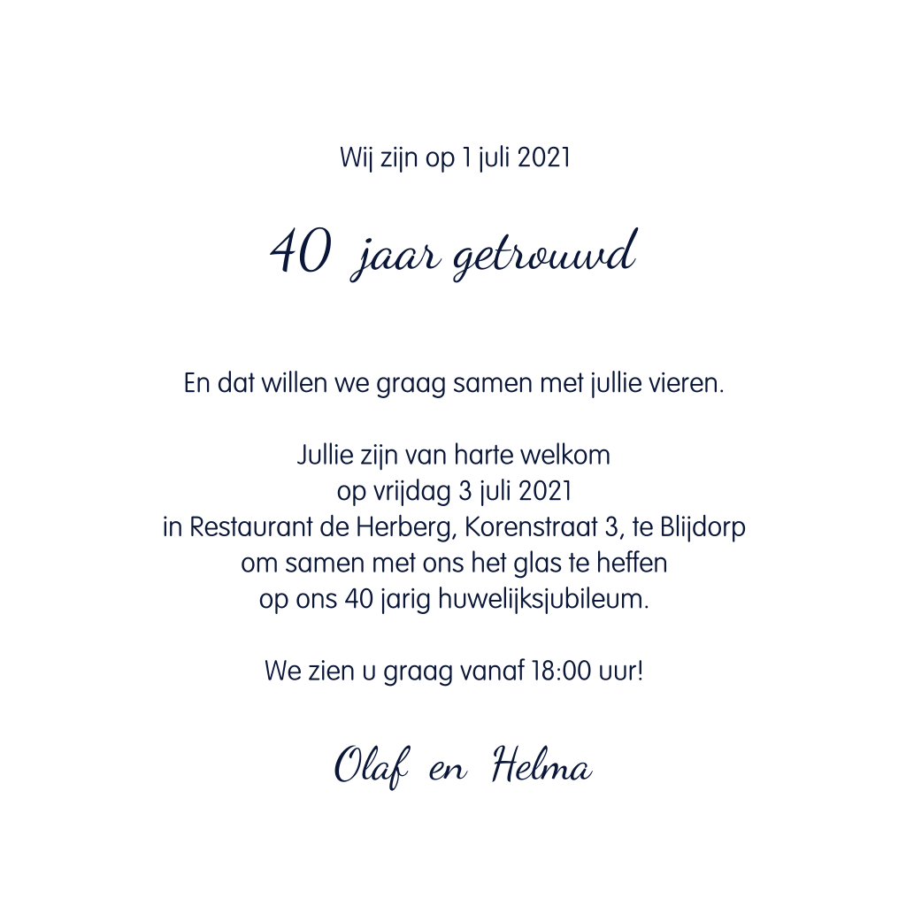 Uitnodiging 40 jaar getrouwd