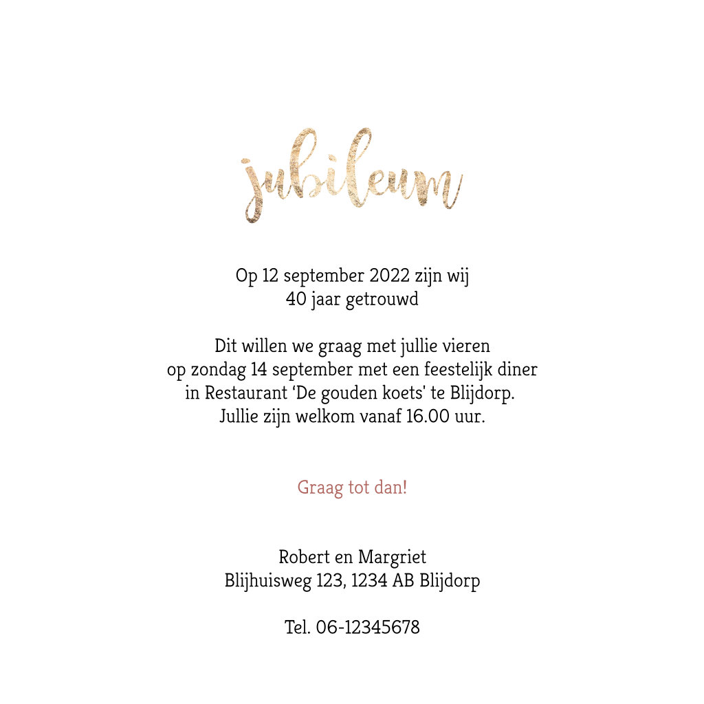 40 jaar getrouwd uitnodiging kader bloemen foto