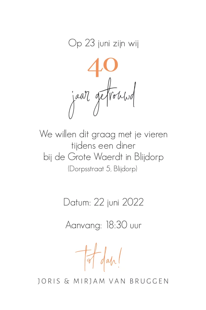 Stijlvolle uitnodiging 40 jaar getrouwd met foto