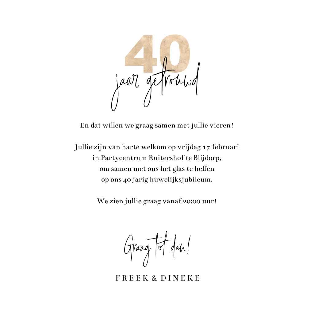 Uitnodiging 40 jaar getrouwd stijlvol met goudlook