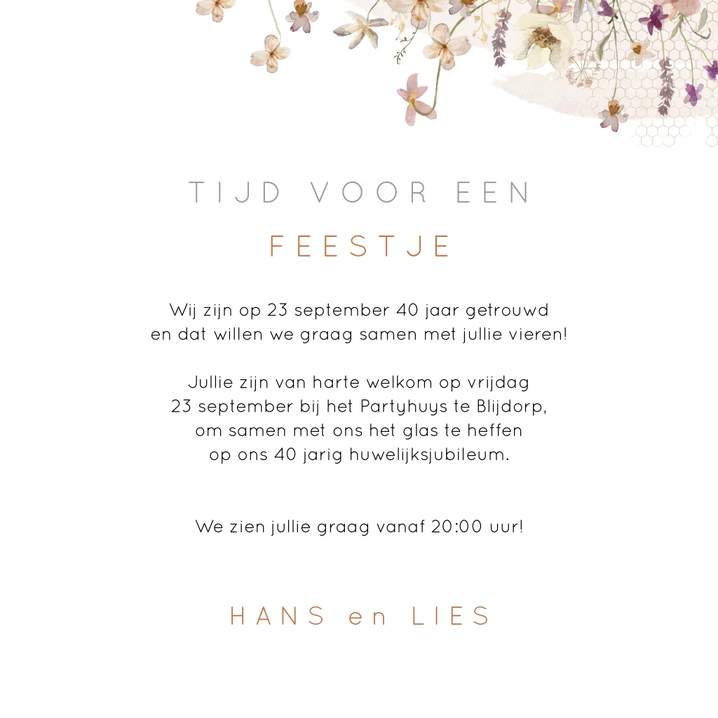 Bloemen uitnodiging 40 jaar getrouwd huwelijksjubileum