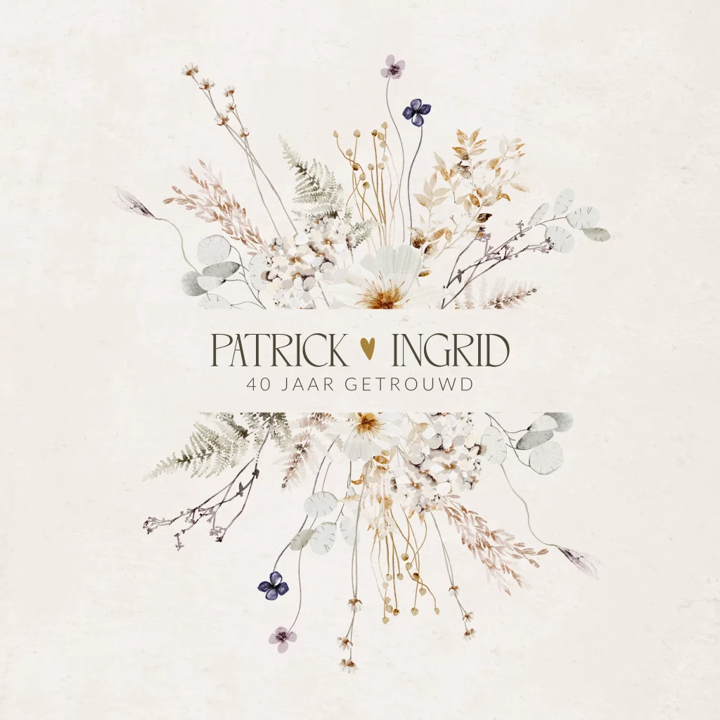 Romantische 40 jaar getrouwd jubileum uitnodiging met bloemen