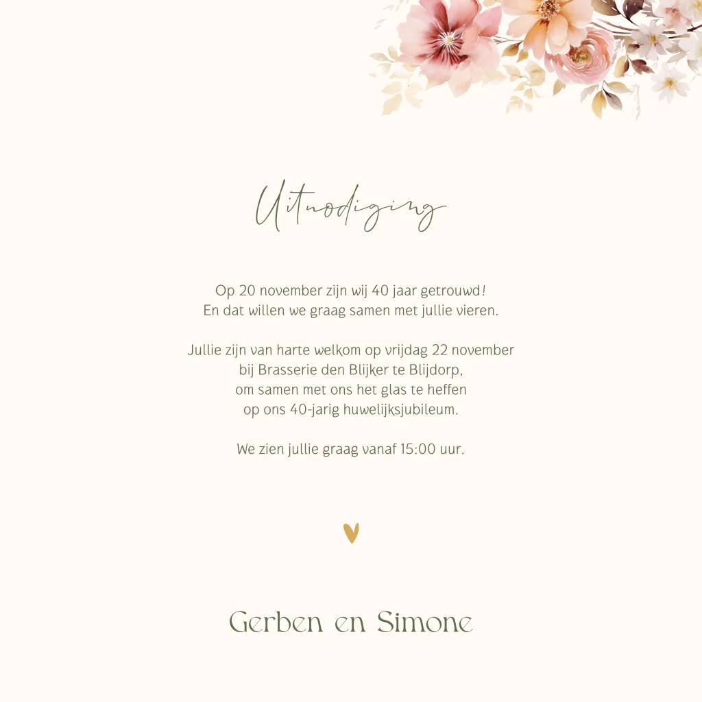 40 jaar getrouwd uitnodiging met romantisch bloemenkader