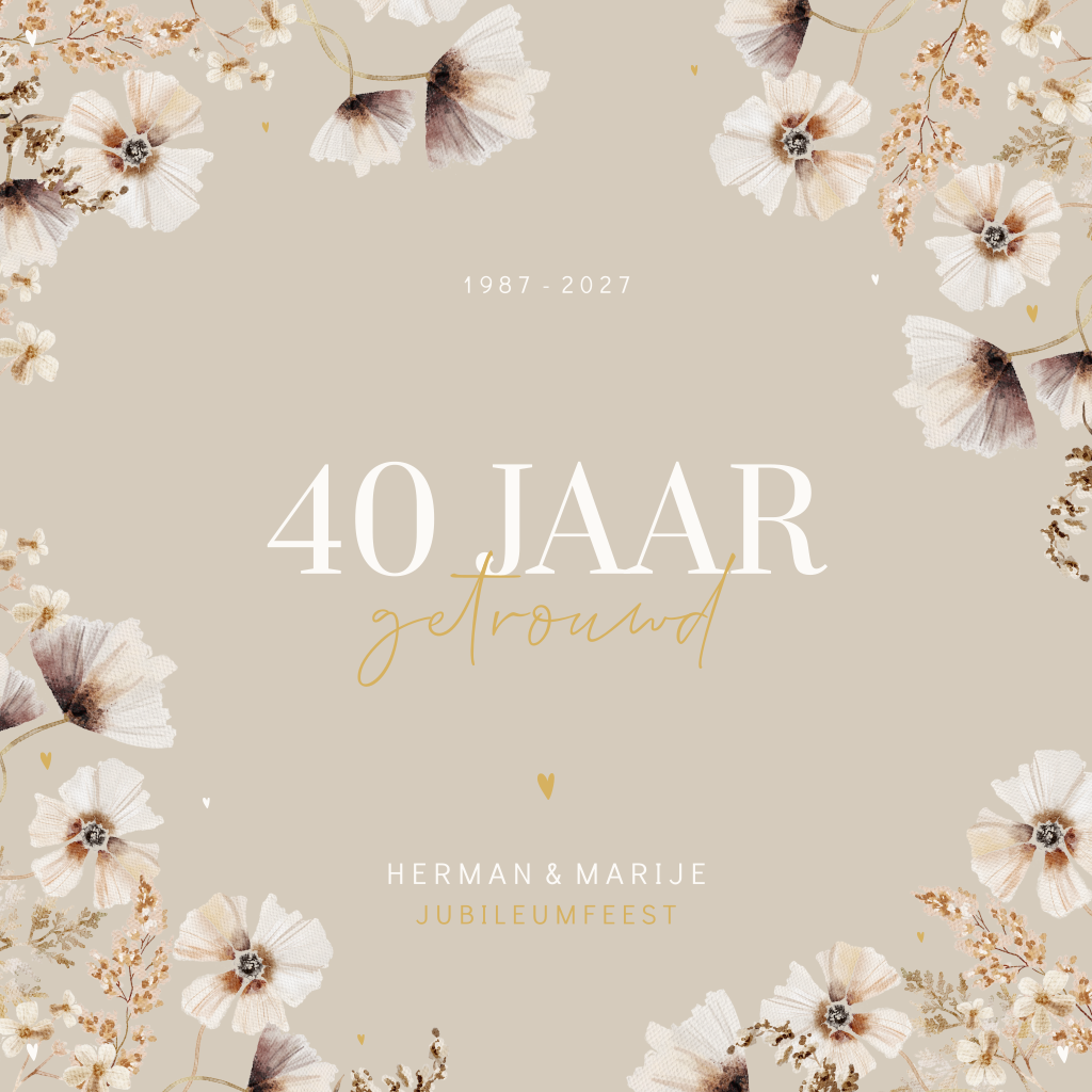 Romantische veldbloemen jubileum uitnodiging 40 jaar getrouwd