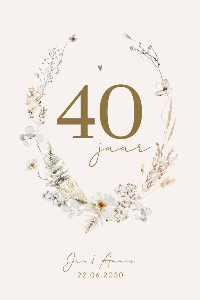 Stijlvolle bloemen uitnodiging 40 jaar getrouwd