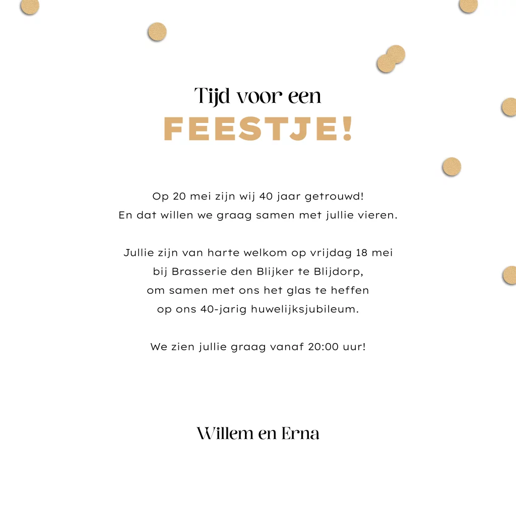 Feestelijke uitnodiging 40 jaar getrouwd met confetti en champagne