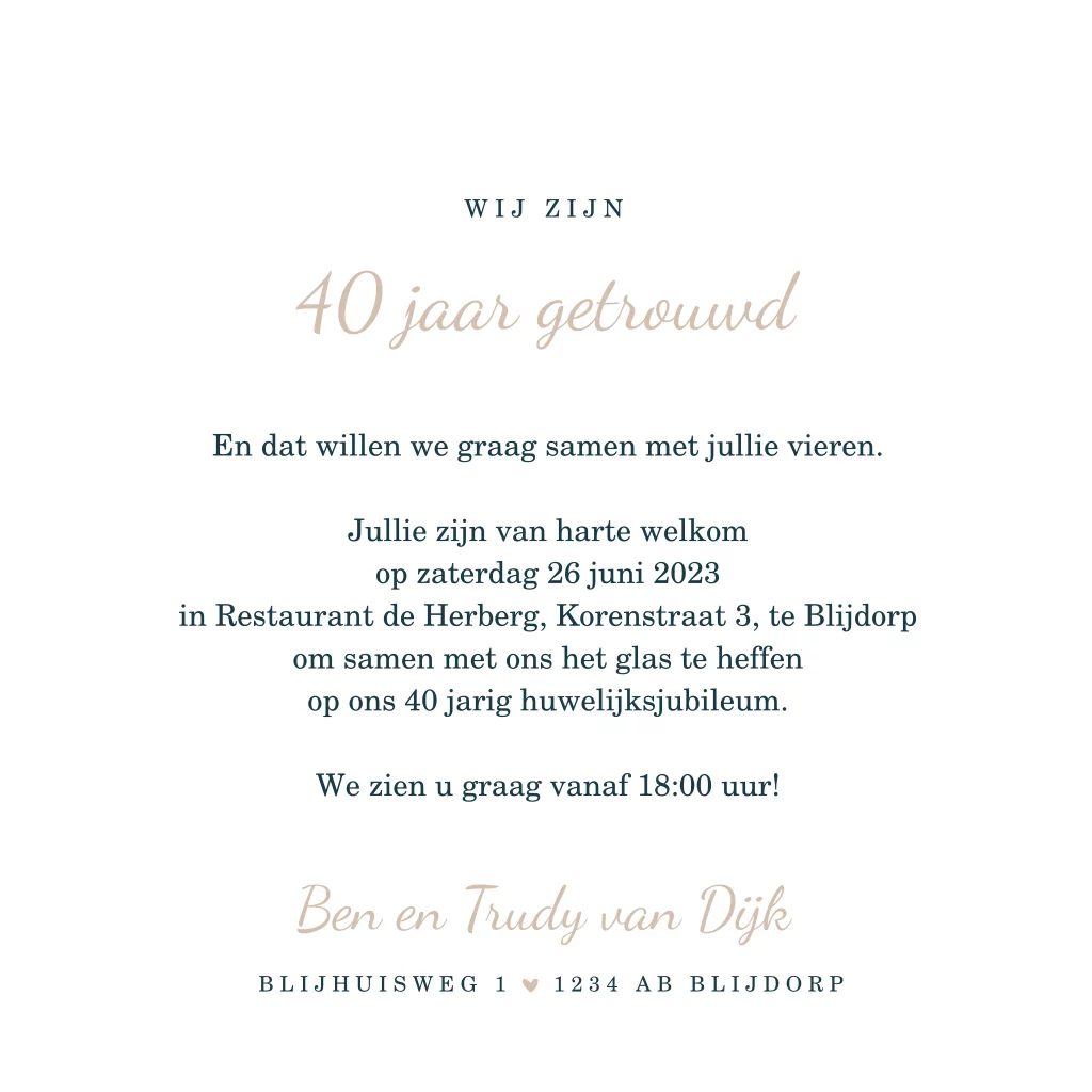 Uitnodiging 40 jaar getrouwd