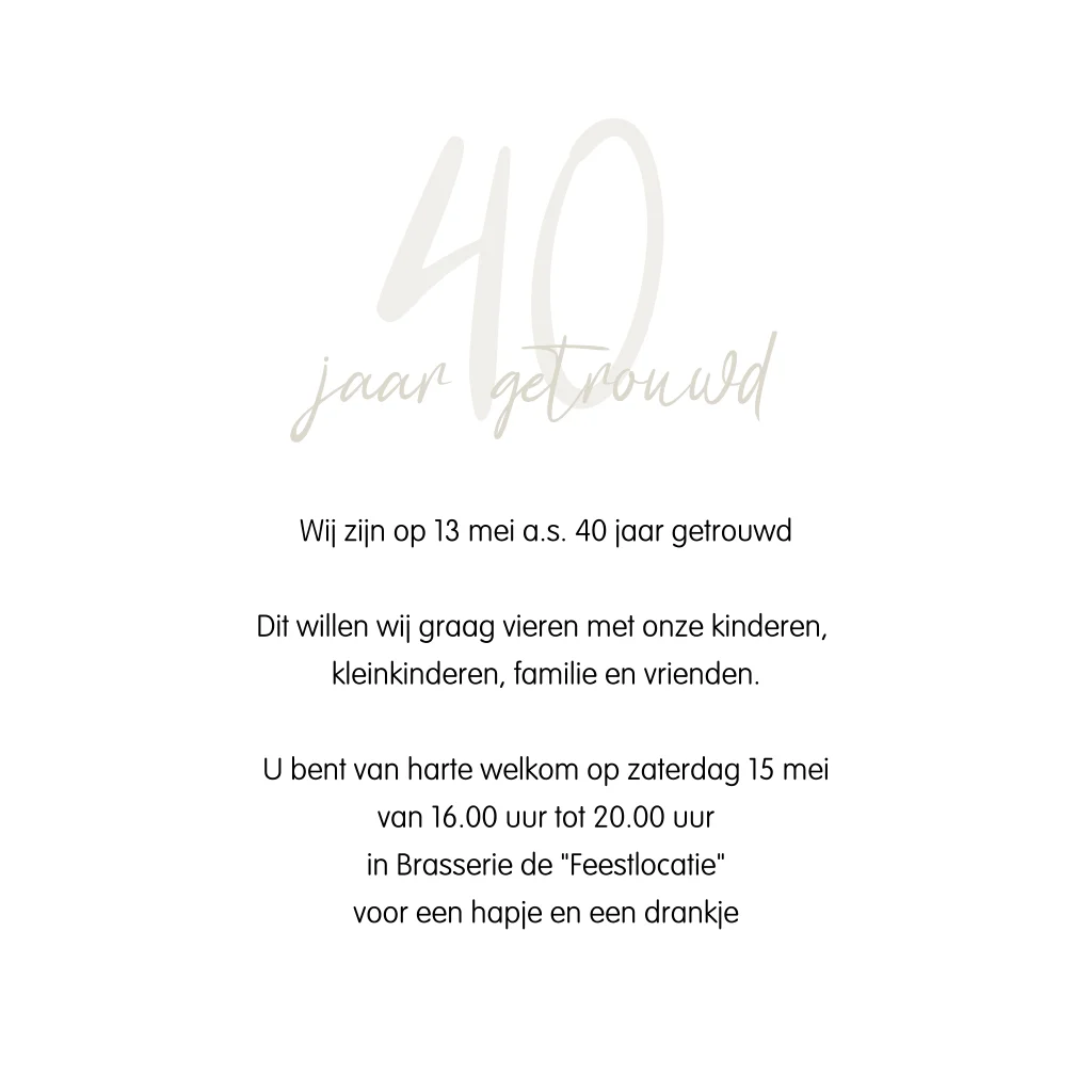 Liefdevolle uitnodiging 40 jaar getrouwd met foto in hartkader