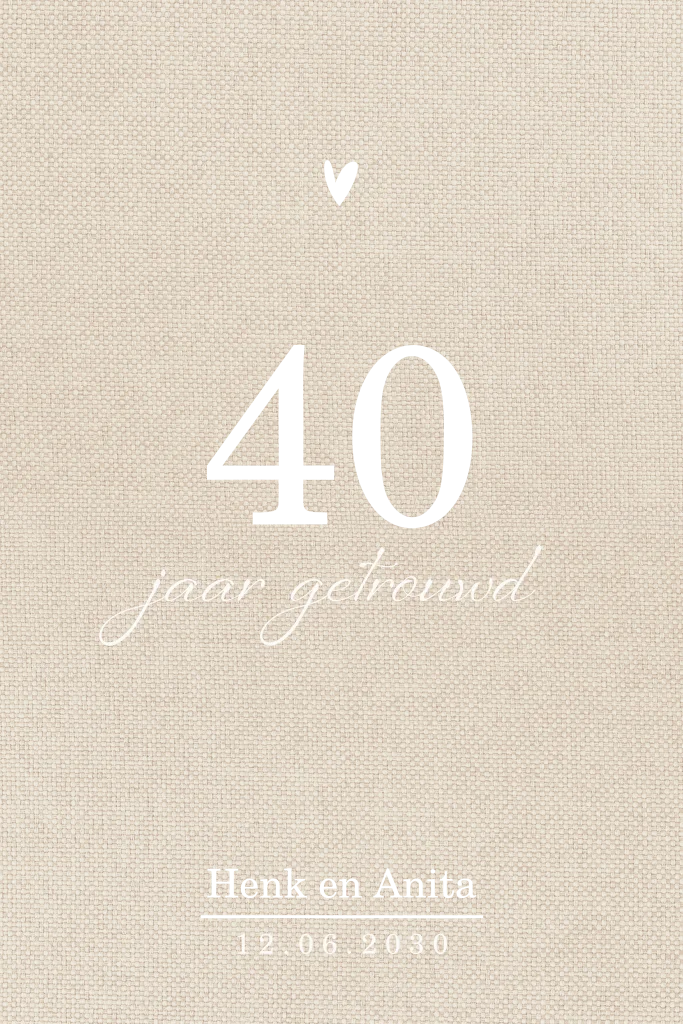 Stijlvolle 40 jaar getrouwd uitnodiging met linnenlook en goudfolie
