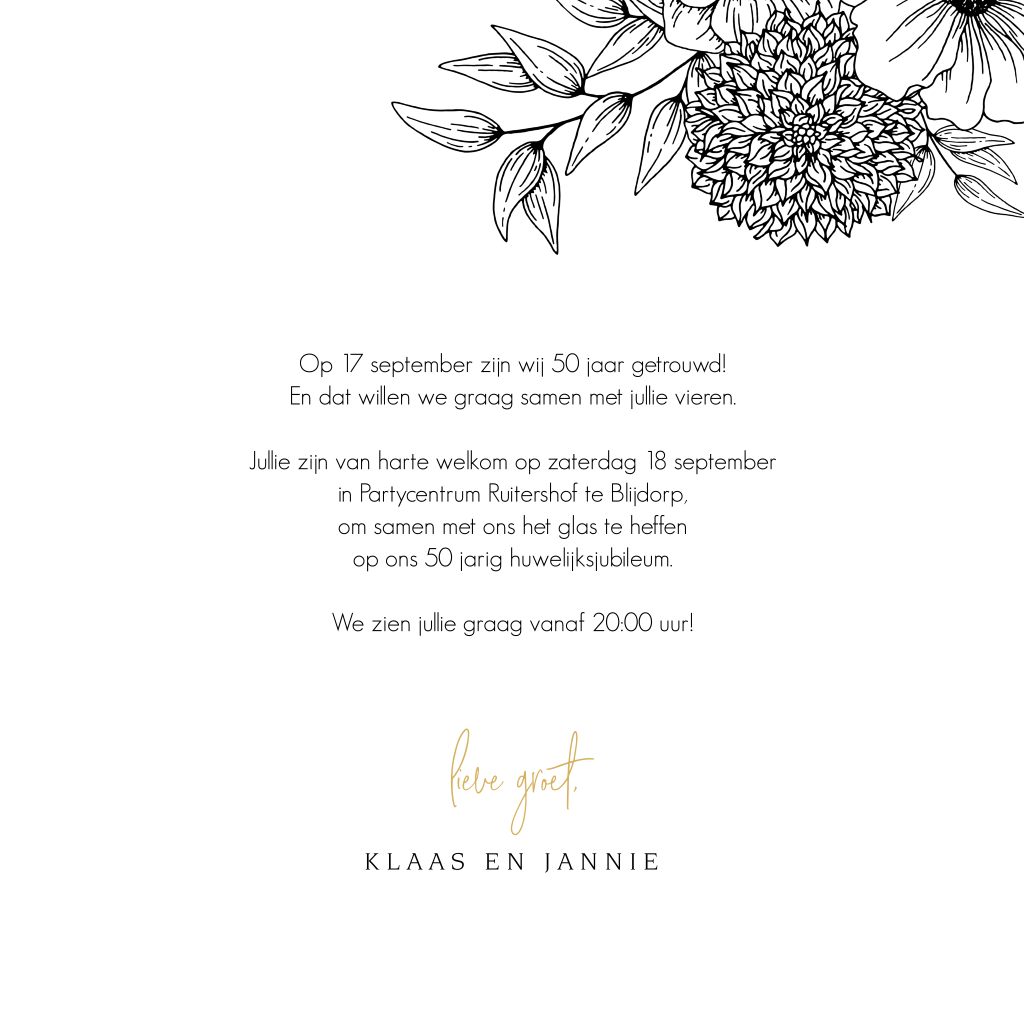 Uitnodiging 50 jaar getrouwd met sierlijk getekende bloemen