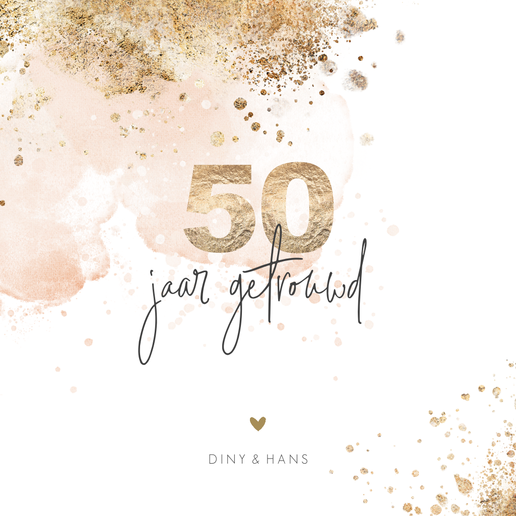 Uitnodiging 50 jaar getrouwd met gouden spetters en zalmroze aquarel