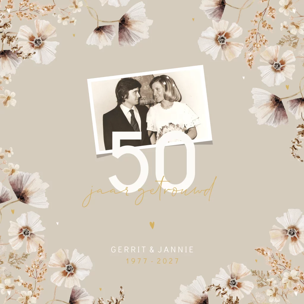 Bloemen uitnodiging met foto 50 jaar getrouwd