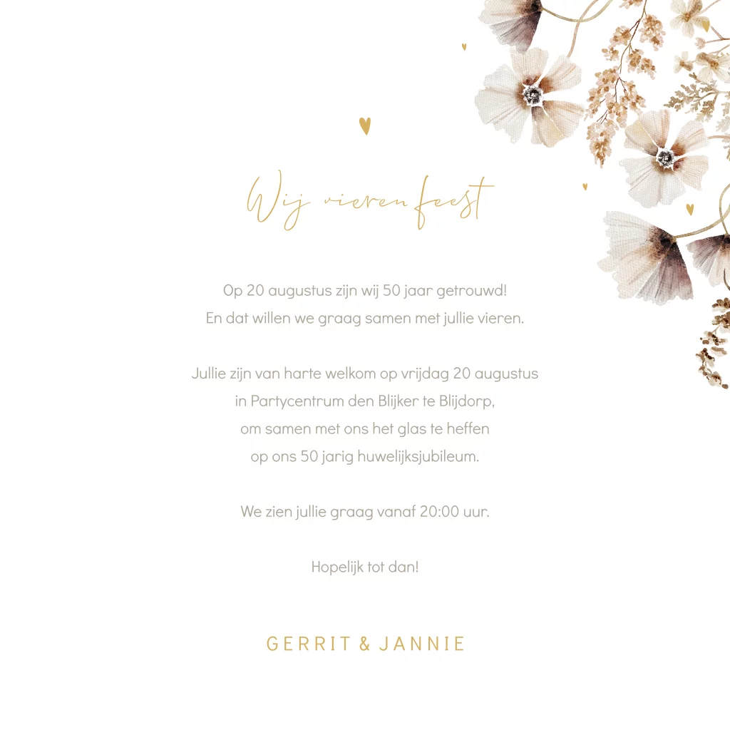 Deze uitnodigingskaart kun je ook gebruiken wanneer je wilt vieren dat je 50 jaar samen bent of bijvoorbeeld een werk gerelateerd 50-jarig jubileum feest wilt geven.