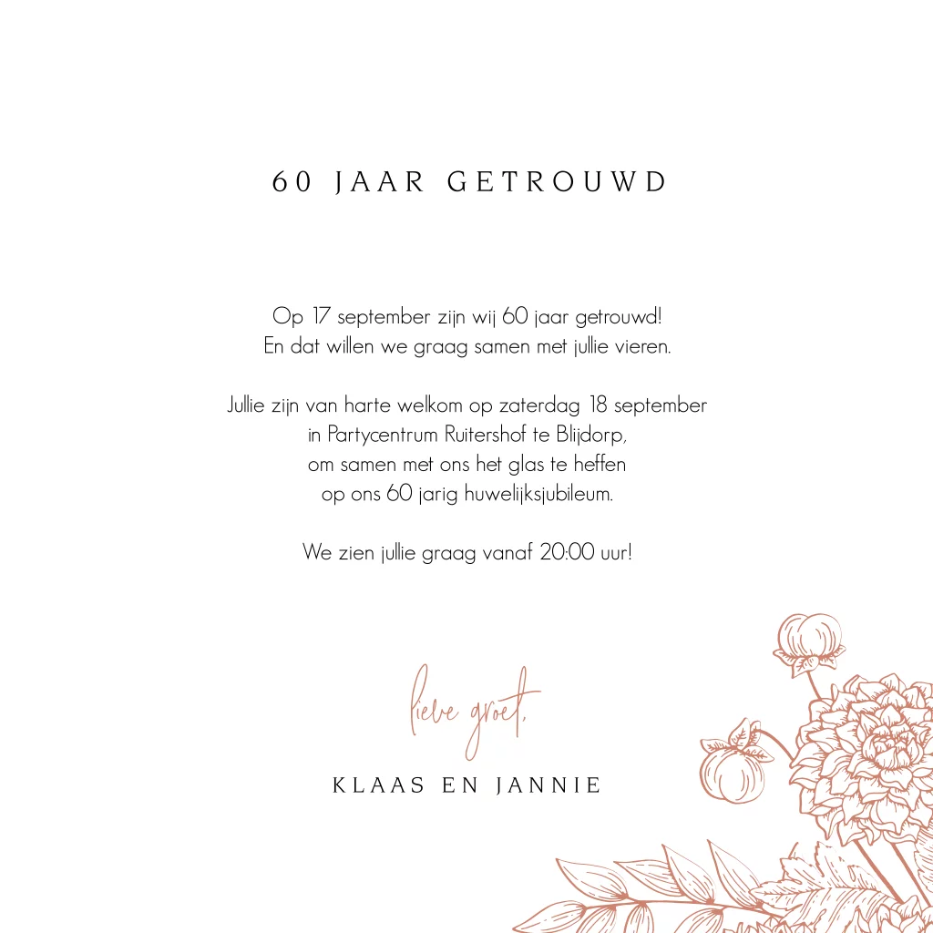 Uitnodiging 60 jaar getrouwd met getekende bloemen
