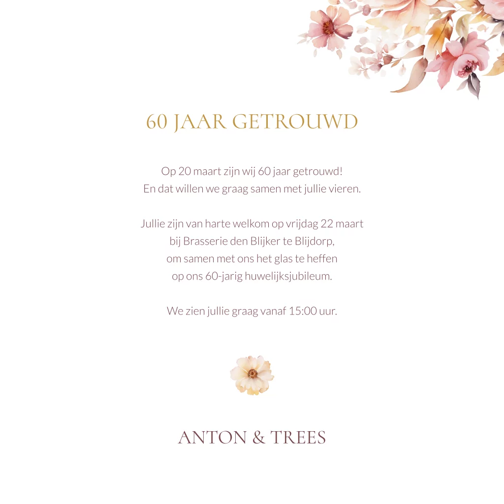Huwelijksjubileum 60 jaar getrouwd uitnodiging met bloemen