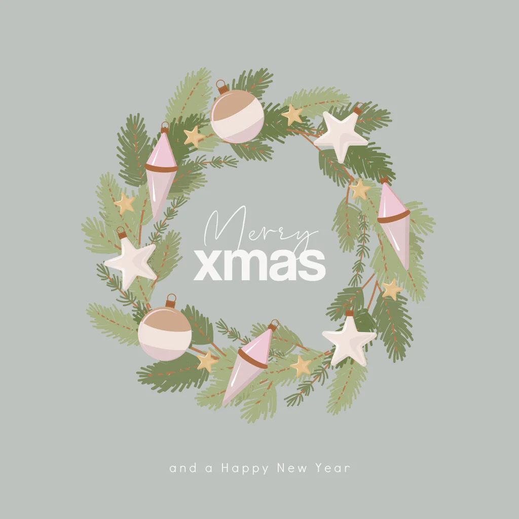 Merry Xmas and a Happy New Year, dat is wat je iedereen natuurlijk van harte toewenst deze feestdagen. Met deze kerstkaart steun je ook nog eens een heel goed doel: het Ronald McDonald Huis Zwolle. Op deze kerstkaart een grijs/groene achtergrond met een kerstkrans. In de kerstkrans kersttakken met kerstballen en ster lichtjes. Voeg het eigen logo van jullie bedrijf toe en dan is deze goede doelen kaart ook geschikt om naar al je zakelijke relaties te sturen.