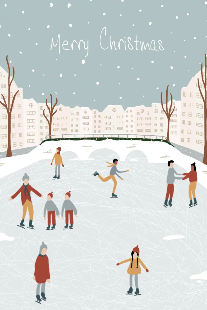 Anna heeft deze winterse kerstkaart ontworpen: “Ik heb voor de gracht met schaatsende volwassenen en kinderen gekozen, omdat ik de sfeer van kerst (met zijn allen zijn en genieten) wil laten zien. Zelf hou ik heel erg van schaatsen met familie en vrienden rond de kerstdagen. Ik heb me laten inspireren door de Amsterdamse grachten wat natuurlijk typisch Nederlands is, net zoals het schaatsen op natuurijs. “