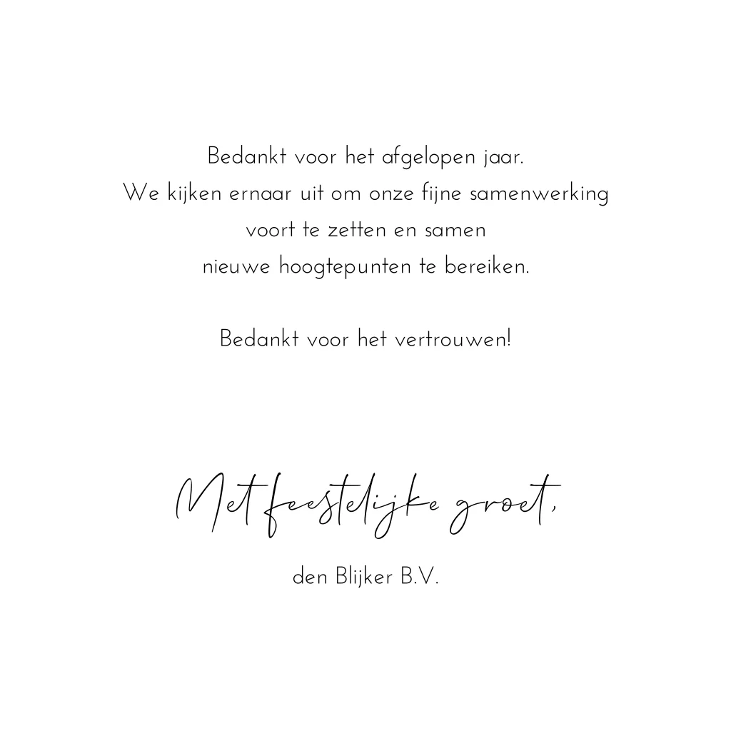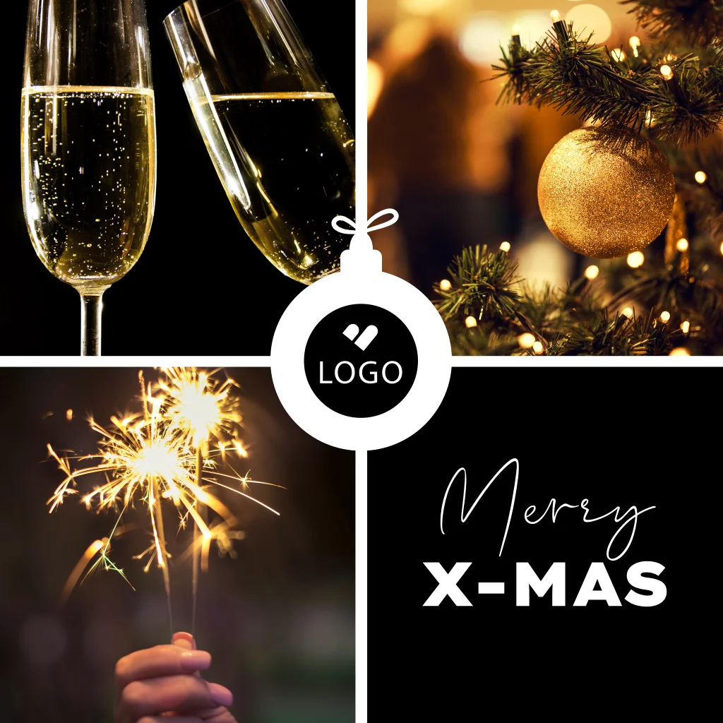 Een zakelijke kerstkaart, speciaal ontworpen voor het goede doel: het Ronald McDonald Huis Zwolle. Wens al je zakelijke relaties een Merry X-Mas met deze zakelijke kerstkaart met Kerst sfeerfoto's van een kerstboom, champagne en vuurwerk sterretjes. Zo komen je klanten alvast helemaal in de kerstsfeer! De foto's zijn eventueel naar wens aan te passen naar eigen foto's. Op de voorkant is er ruimte voor het logo van je eigen bedrijf. Deze staat in een kerstbal.
