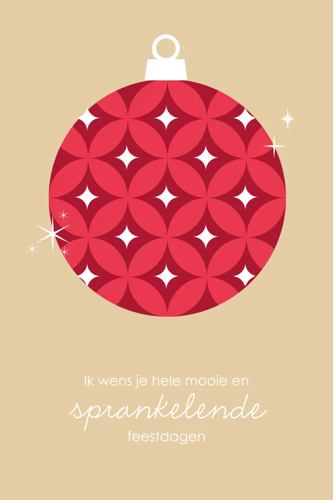 Een leuke zakelijke kerstkaart met een sprankelende kerstbal met een opvallend patroon. Wens je medewerkers en zakelijke relaties met deze kerstkaart hele mooie en sprankelende feestdagen toe. Deze zakelijke kerstkaart bevat goudfolie. Folie zorgt voor een extra vleugje luxe. Deze kaart is speciaal ontworpen voor het goede doel het Ronald McDonald Huis Zwolle. Voor elke verkochte kaart doneert Blijkaartje daarom €0,20 aan het Ronald McDonald Huis Zwolle.