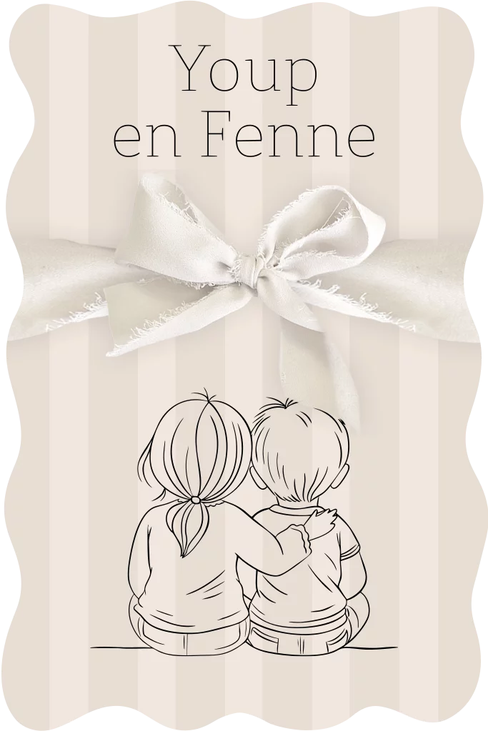 Dit prachtige geboortekaartje is een unieke keuze voor de aankondiging van de geboorte van jullie tweeling! Dit geboortekaartje Youp en Fenne heeft een aparte vorm, namelijk een uitsnede van golven met een gestreepte achtergrond. Daarnaast is het geboortekaartje verfraaid met een elegant chiffon lint, wat een stijlvolle touch toevoegt. Dit geboortekaartje is perfect voor ouders die op zoek zijn naar iets origineels voor hun tweeling. De kindjes kan je makkelijk aanpassen naar twee jongentjes of twee meisjes. Gebaseerd op het geboortekaartje van Sol Rae van Kae Sutherland. Pas de teksten, kleuren en lettertypes eenvoudig aan in de editor en maak het kaartje af met een zand envelopkleur.