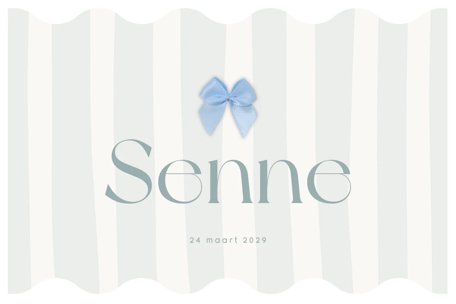 Geboortekaartje voor een jongen met golvende vorm, strepen en strikje