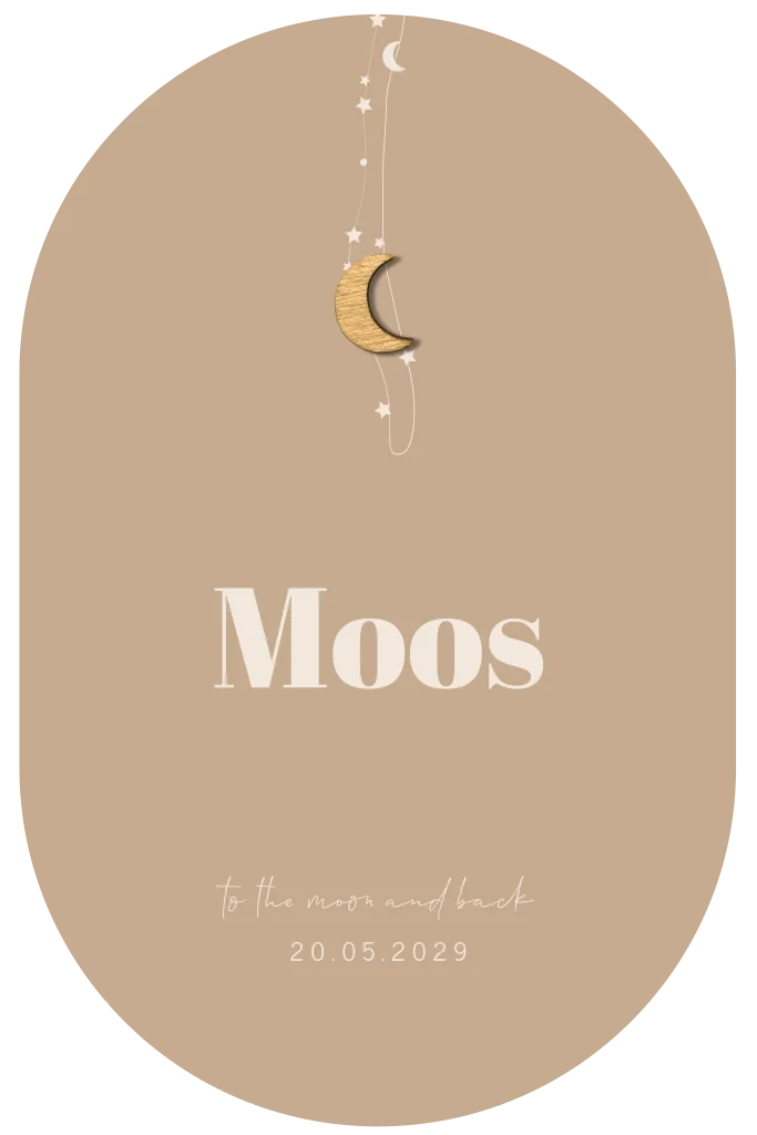 Dit kaartje is voorzien van een houten maantje. Houten vormpjes worden niet standaard meegeleverd, maar zijn bij te bestellen.