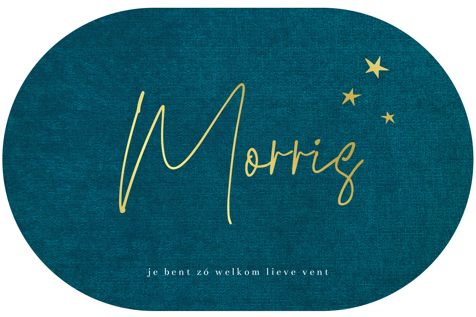 Bijzonder jongens babykaartje in aparte vorm, speciaal voor jullie unieke ventje! Dit geboortekaartje Morris is gesneden in een ovale vorm. De sterretjes en de naam worden gedrukt in écht goudfolie, wat dit kaartje super luxe maakt. De velvet jeans achtergrond geeft een zacht sfeertje aan deze kaart. Pas deze kaart naar eigen smaak aan in de editor, ook mogelijk met zilverfolie, koperfolie, roséfolie of zwartfolie. Hulp nodig bij het ontwerpen? Laat het ons gerust weten.