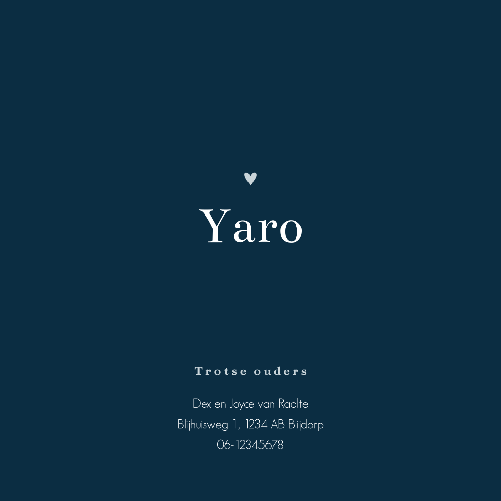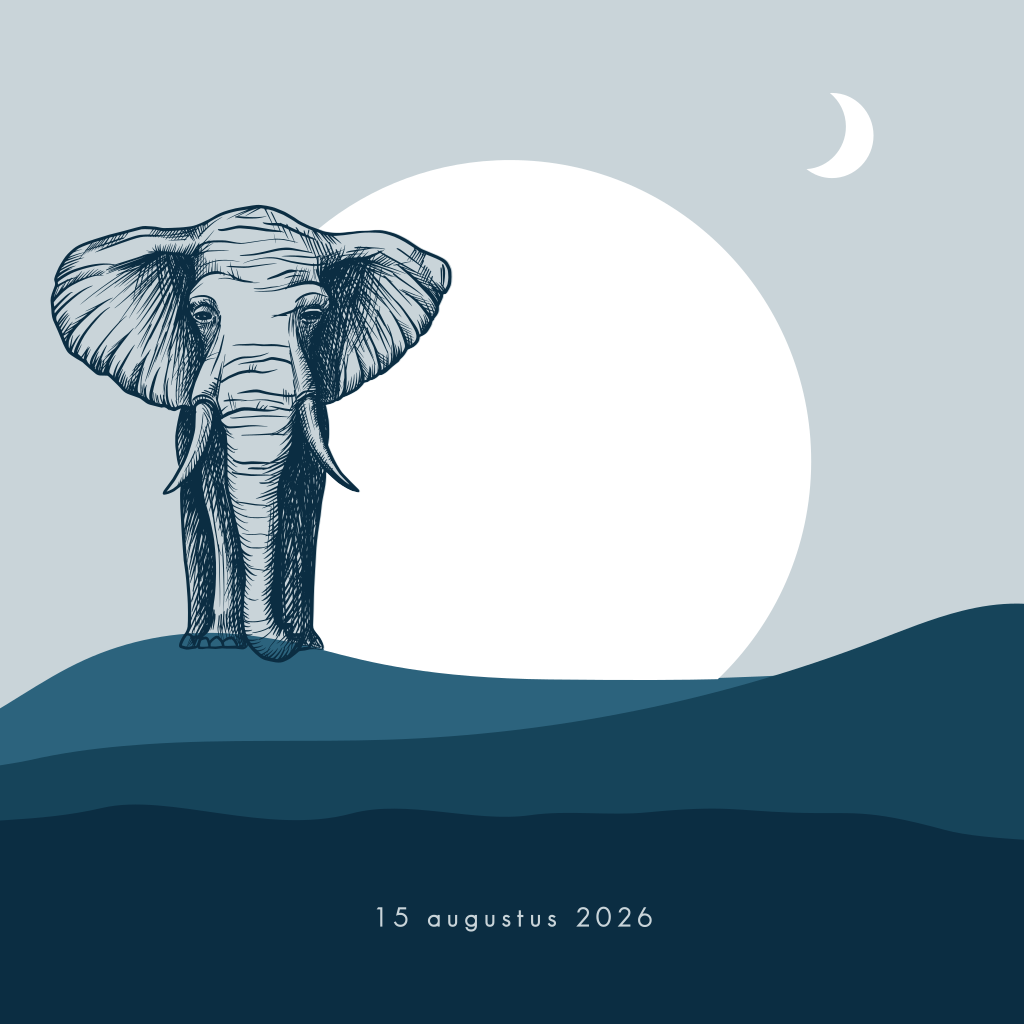 Geboortekaartje in safari stijl voor een jongen, jullie zoon! Op dit babykaartje Yaro staat een olifant in een glooiend landschap in blauwe ton-sur-ton kleuren. Uniek aan dit kaartje is de uitsnede van de ondergaande zon en maan. Liever een ander tekst, kleur of lettertype? Dit pas je eenvoudig aan in onze editor.