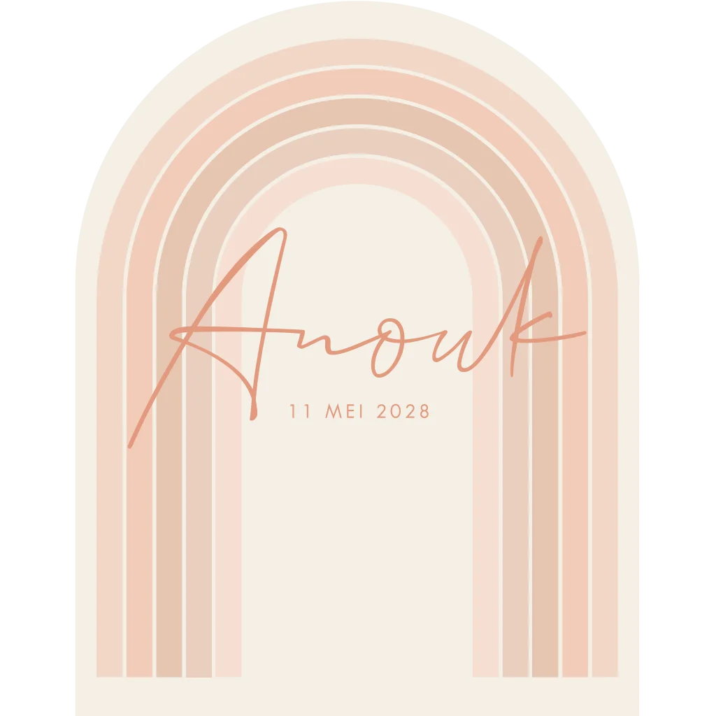 Kies voor jullie unieke dochter een écht bijzonder geboortekaartje in aparte vorm. Dit babykaartje Anouk wordt gesneden in de vorm van een arch en heeft trendy lichtroze kleuren. Bij de boogvorm van het meisjeskaartje, past een regenboog natuurlijk perfect! Wil je liever andere kleuren of teksten? Dit pas je eenvoudig aan in onze editor.