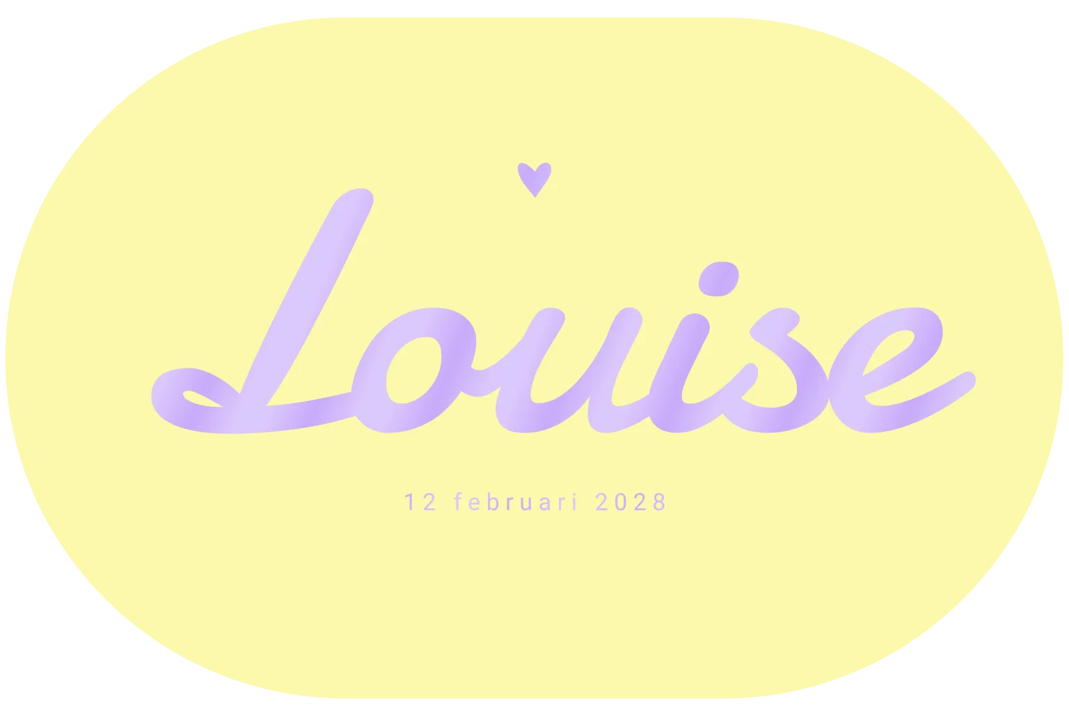 Hou jij van kleur? Dan is dit bijzondere geboortekaartje zeker geschikt! Extra bijzonder aan dit hippe meisjes kaartje Louise is de ovalen vorm en het gebruik van spot-uv folie. Spot-uv is een luxe hoogglans afwerking. Door deze glanzende lila lak springt de naam van jullie dochter er extra uit tegen de pastel gele achtergrond. Pas deze kaart naar eigen smaak aan in de editor. Hulp nodig bij het ontwerpen? Laat het ons gerust weten.