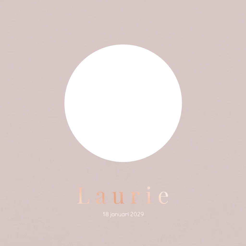 Lief geboortekaartje voor een meisje met roséfolie en doorkijkje