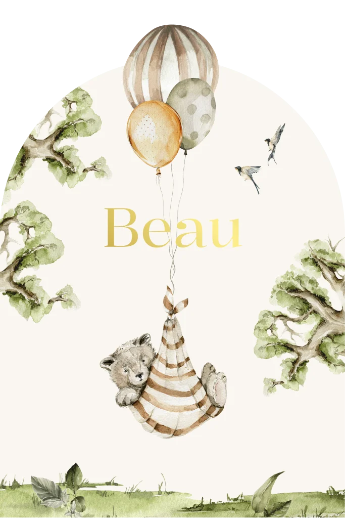 Dit unieke geboortekaartje in aparte vorm met foliedruk is perfect voor de aankondiging van de geboorte van jullie kindje. De schattige beer en vrolijke ballonnen geven het kaartje een speelse uitstraling. De foliedruk en boogvorm van het kaartje zorgen voor een luxe afwerking, waardoor het kaartje echt opvalt. Dit kaartje is perfect voor ouders die op zoek zijn naar een unisex ontwerp dat zowel voor een jongen als meisje geschikt is. Kortom, dit geboortekaartje Beau is een prachtige keuze voor ouders die op zoek zijn naar een bijzonder en opvallend kaartje om de geboorte van hun zoon of dochter aan te kondigen.