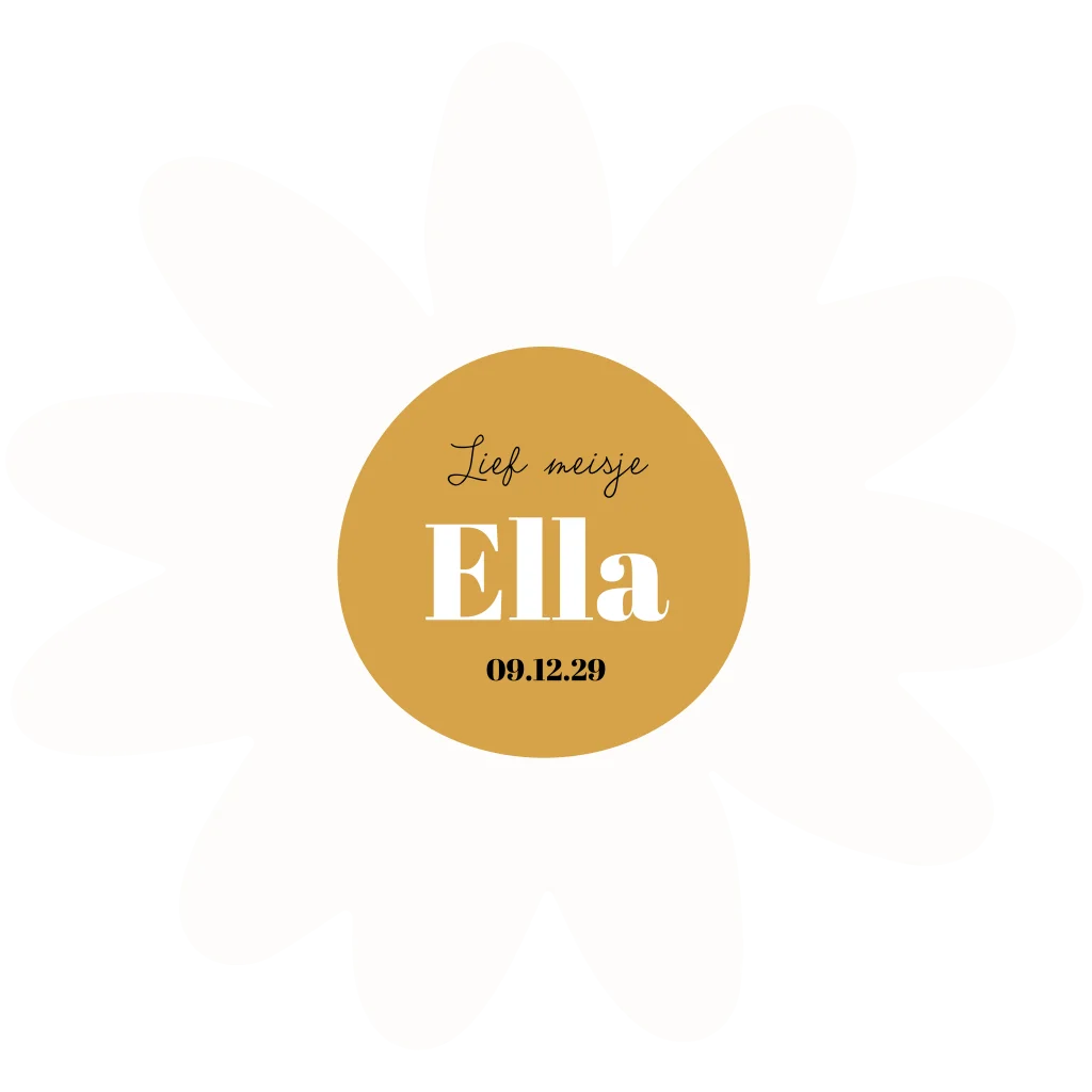 Fleurig geboortekaartje in een originele vorm. Dit babykaartje Ella is gesneden in de vorm van een bloem: een madeliefje. Teksten en lettertypes pas je eenvoudig aan in onze editor. Hulp nodig? We staan voor je klaar!