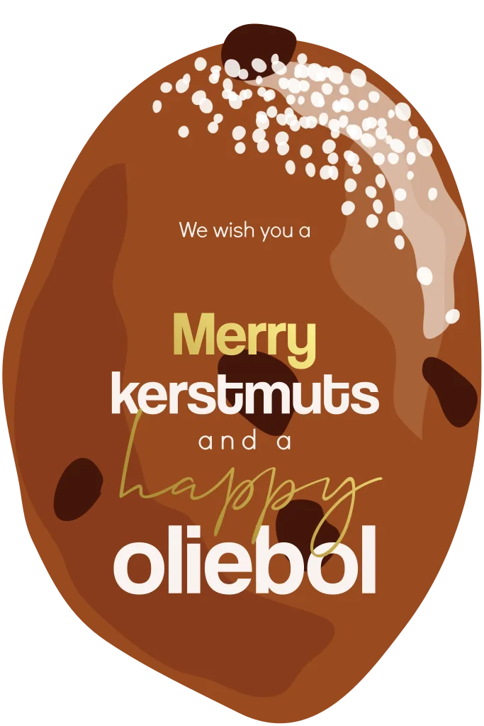 Hippe kerstkaart in de vorm van een oliebol met rozijnen en poedersuiker. Deze happy oliebol kerstkaart heeft goudfolie wat de kaart nog extra exclusief en origineel maakt. Wens hiermee je familie en vrienden fijne feestdagen.