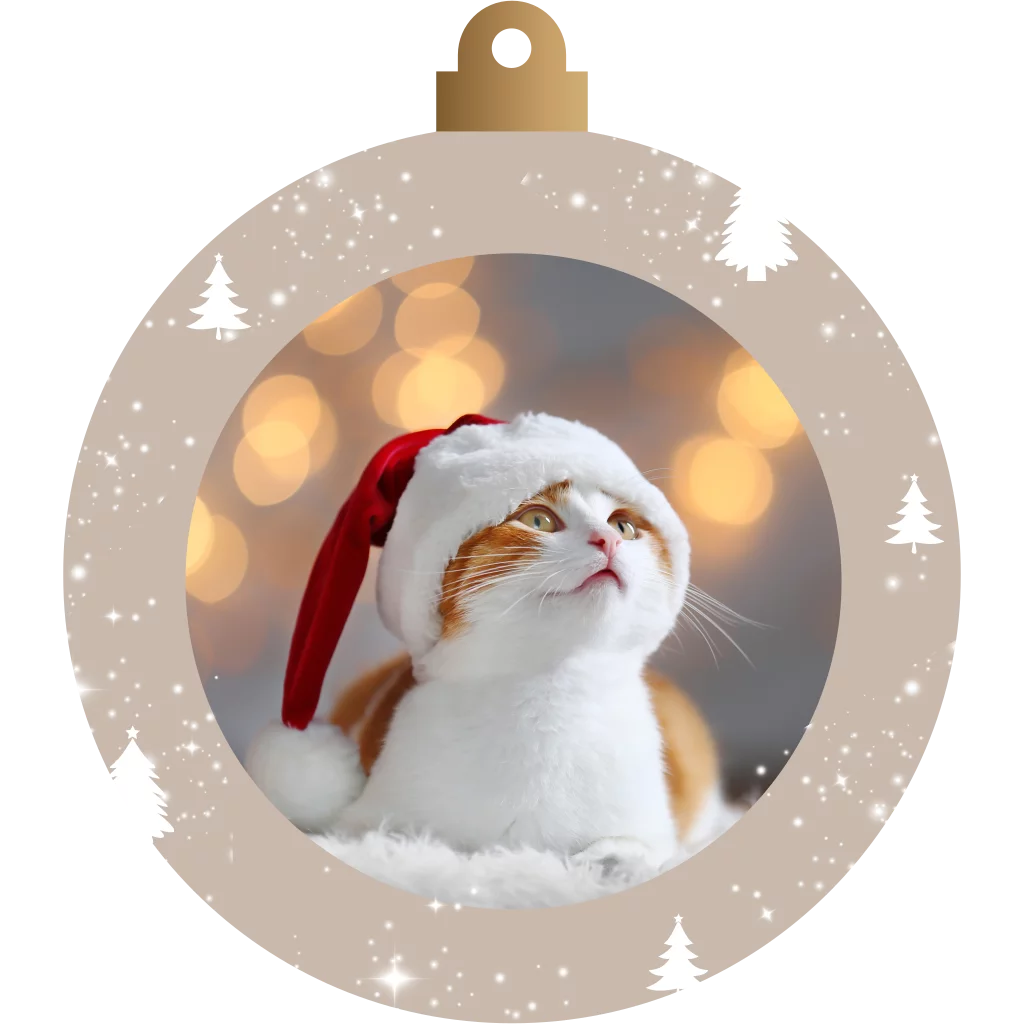 Kerstbal kerstkaart in aparte vorm met foto kat voor in kerstboom