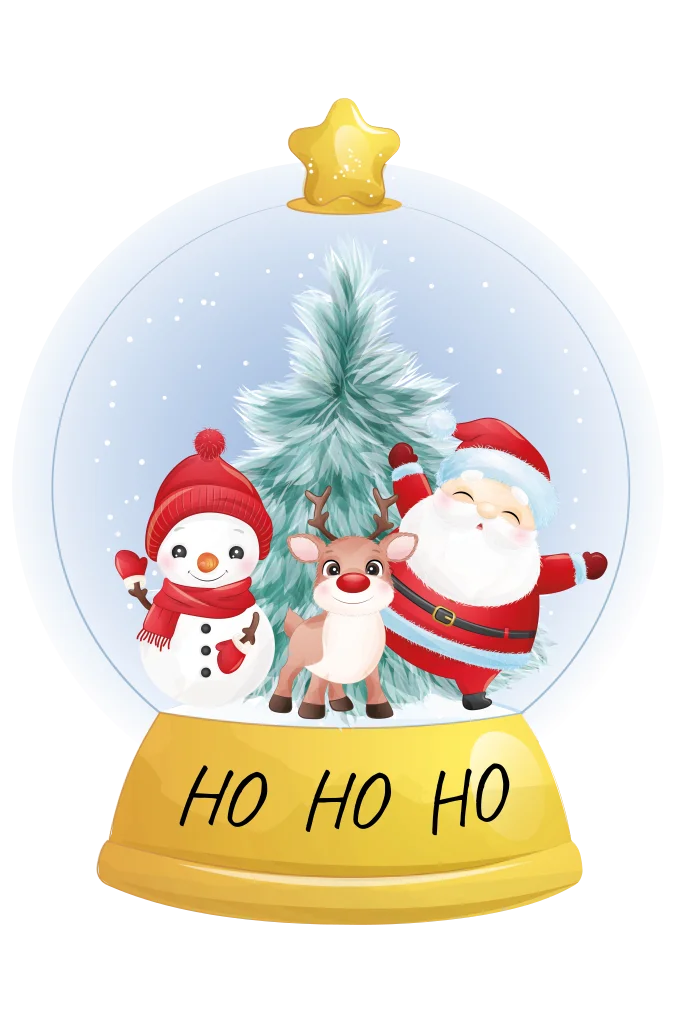Een vrolijke kerstkaart in een mooie sneeuwbol vorm. In deze sneeuwbol vorm zie je een blije geïllustreerde kerstman, een schattig rendiertje en een sneeuwpop. Deze kerstkaart is origineel om te versturen! Laat je inspireren door de feestelijke sfeer en verspreid de kerstvreugde met deze prachtige kerstkaart.
